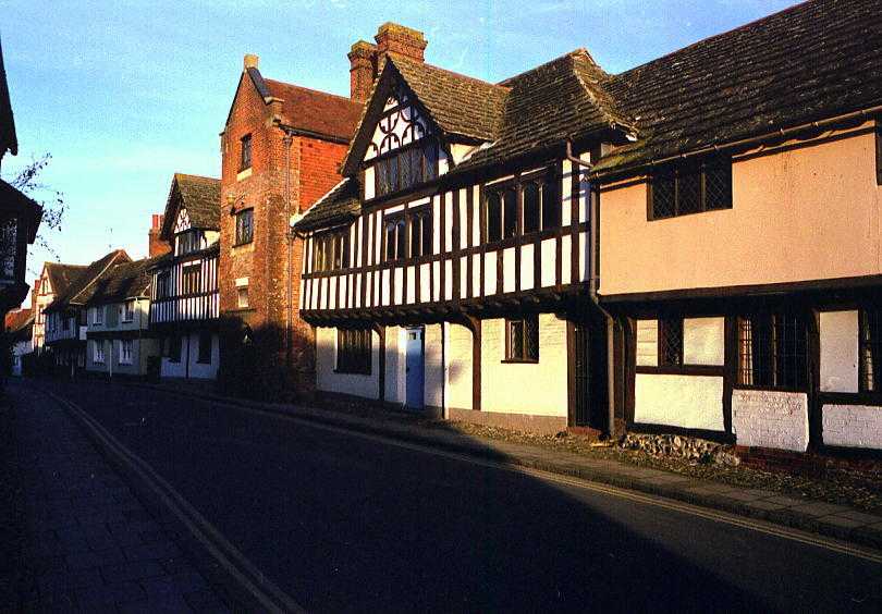 The centre of Steyning is at the crossing of the High Street and Church Street. The map below shows the village centre, with the old market square now taken over by a car park where the P and C symbols are.