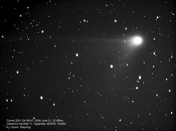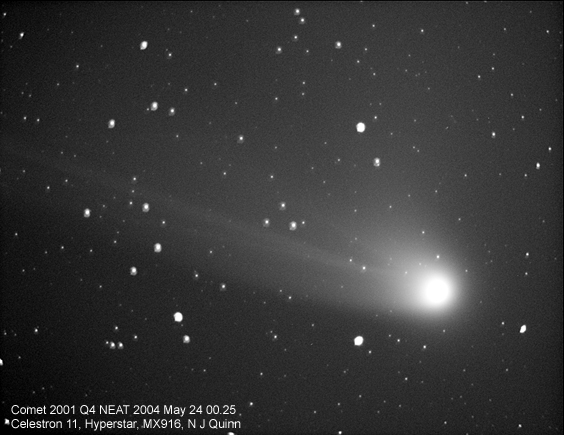 Comet 2001 Q4 has been a very impressive sight in the evening sky. These images were taken through a Celestron C11 fitted with Starizona's Hyperstar lens to give an effective focal length of 500mm at f/1.8!